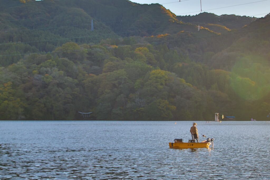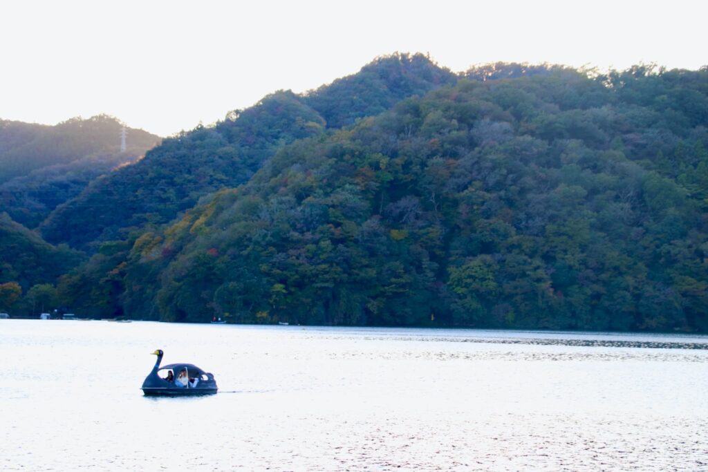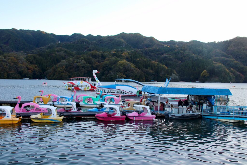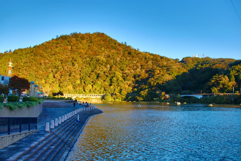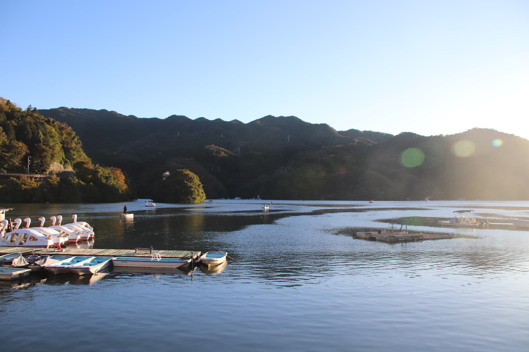 相模川をせきとめて造られた人造湖で、ワカサギやヘラブナなどが釣れ、初心者から上級者まで楽しむことができる釣り場として有名です。また、1964年の東京オリンピックのカヌー競技場にもなりました。射的などのレトロゲームや足こぎスワンボート等を楽しめます。