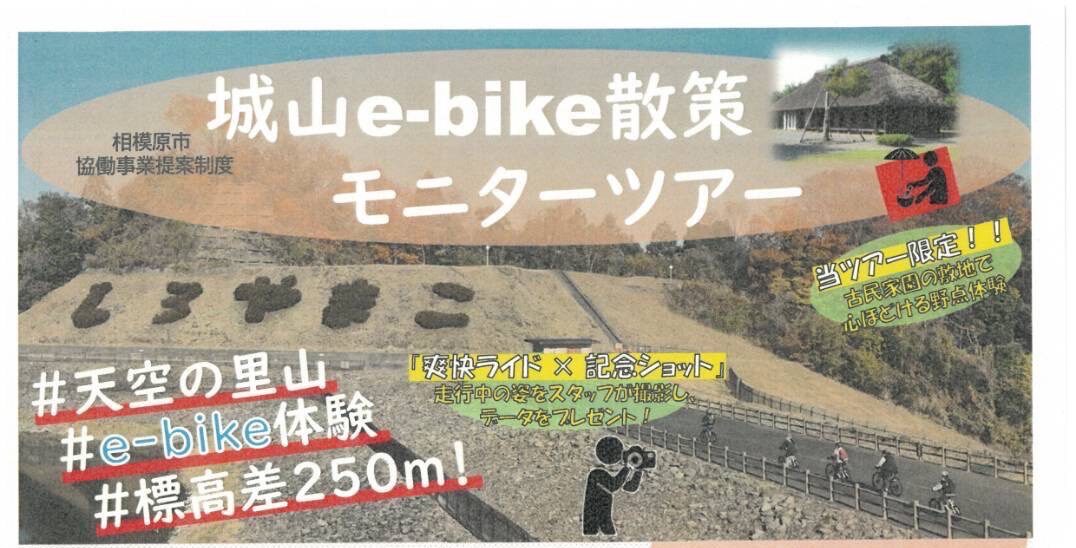 本事業は、相模原市協働事業提案制度を活用して城山観光協会が実施するもので、城山地区の魅力である自然散策を活用した誘客の促進、認知度・二次交通不足の課題解決を図るため、e-bikeを組み合わせたコンテンツの商品化を目的としたモニターツアーです。