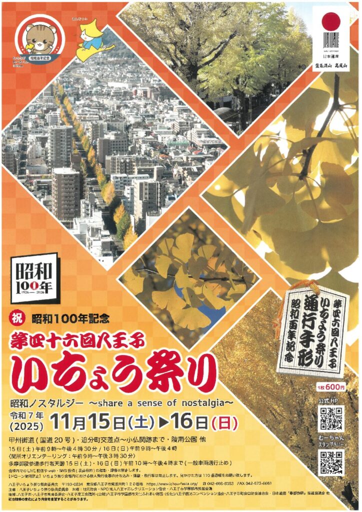 【このイベントは終了しました】【11月15日(土)~11月16日(日)開催】昭和100年記念「第46回 八王子いちょう祭り」が開催されます!