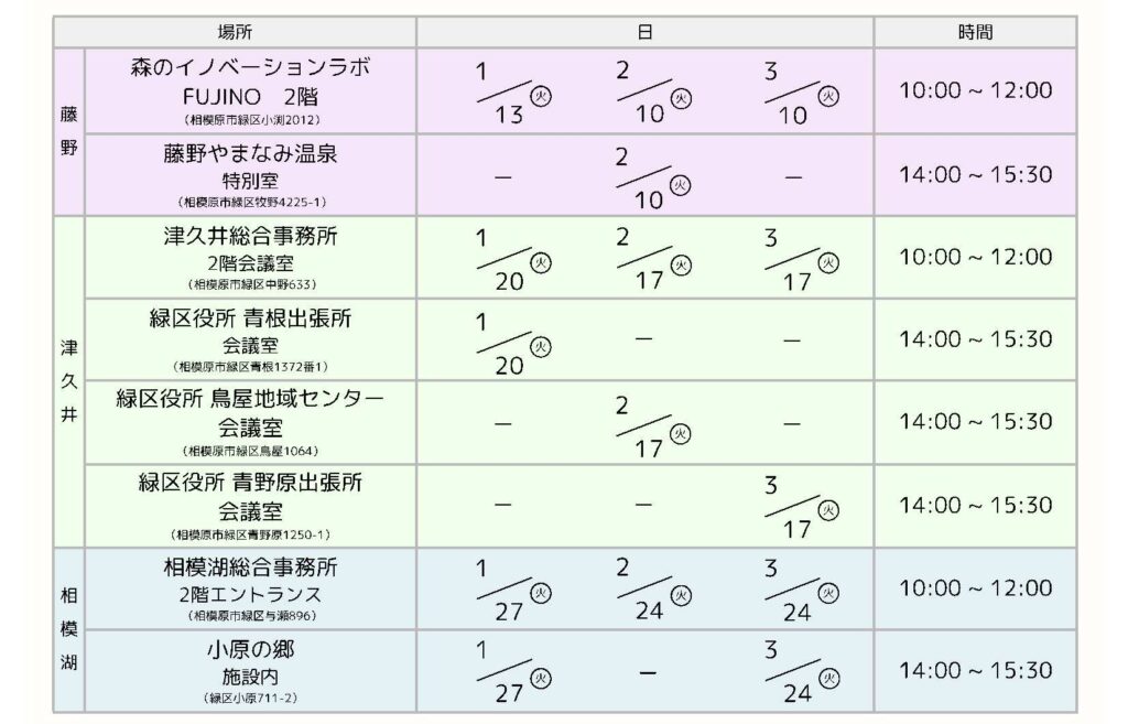 デジタル機器なんでも相談会の2026年1月〜3月の日程は次のとおりです。