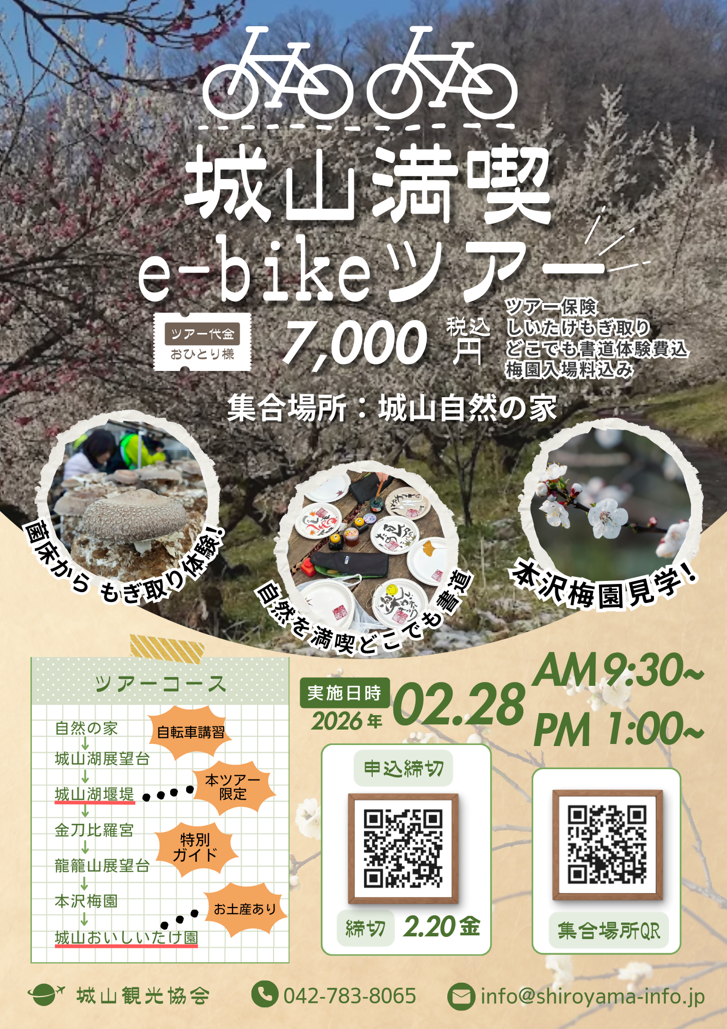 (ツアー保険、しいたけもぎ取り、どこでも書道体験、梅園入場料込み)