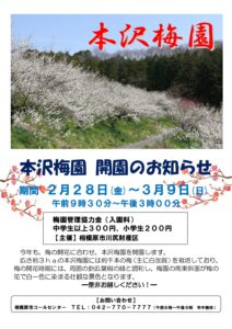 【2024年2月23日(金)~3月3日(日)開催】本沢梅園 開園のお知らせ