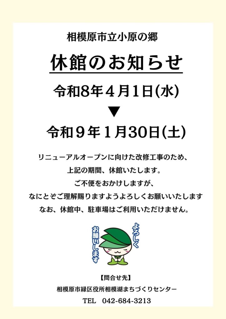 【2026年4月1日(水)~2027年1月30日(土)】小原の郷が休館します