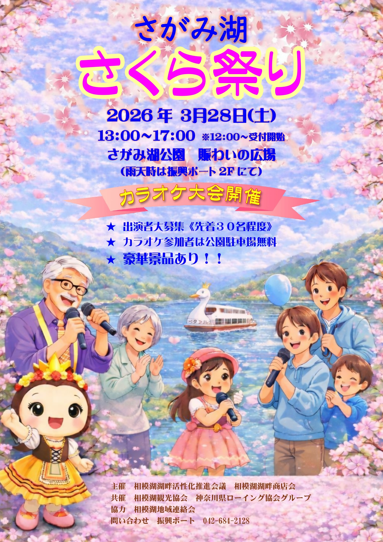 桜の時期に相模湖公園で開催されるお祭りです。地域の方のカラオケ大会等で盛り上がります。 開催場所相模湖公園(相模原市緑区与瀬317-1) 主催相模湖畔活性化推進会議…