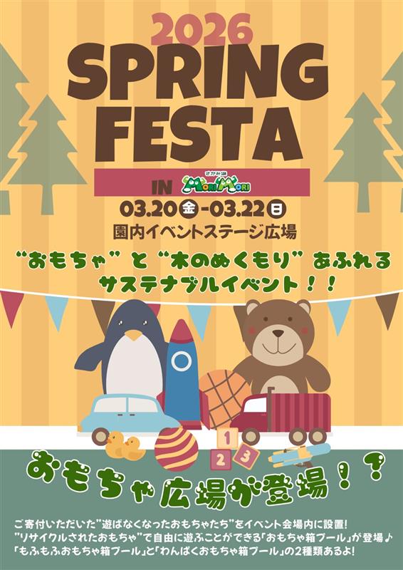 さがみ湖MORI MORIで~「おもちゃ」と「木のぬくもり」があふれる春~MORI MORIスプリングフェスタ2026が開催されます!
