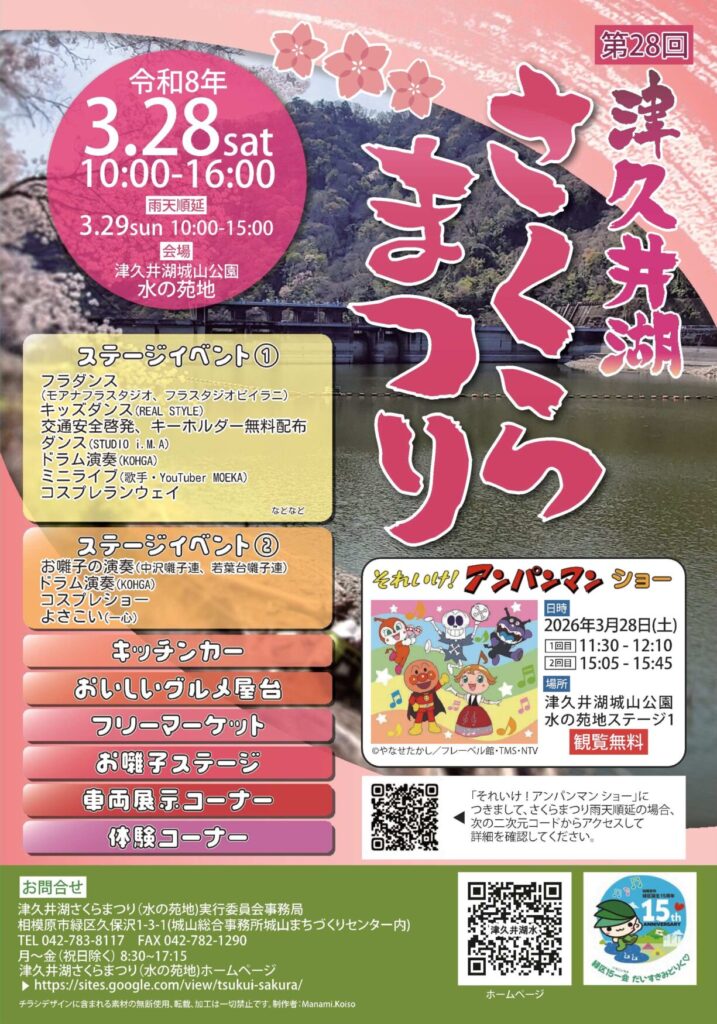 このイベントは終了しました 津久井湖城山公園(花の苑地)で緑区誕生15周年記念「第28回 津久井湖さくらまつり(花の苑地)」が開催されます!バンド演奏や創作ダン […](続きを読む)