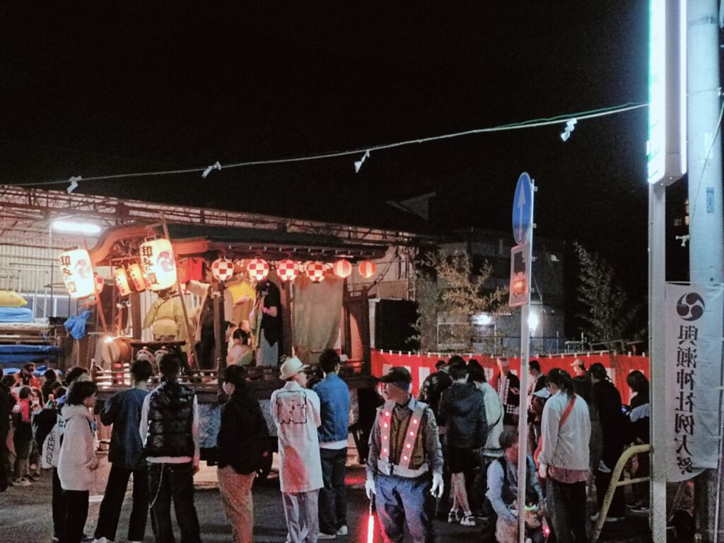 山車を引いてきて休憩中