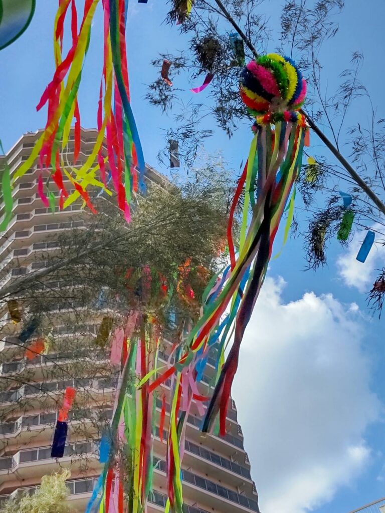 青空を背景にたなびく七夕飾りがきれいでした。